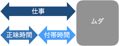 - 付帯時間:正味時間にするために必要な行動(段取りなど)
