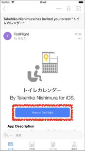 まず、タイトルが「Takehiko Nishimura has invited you to test “トイレカレンダー”」と表示されています。
