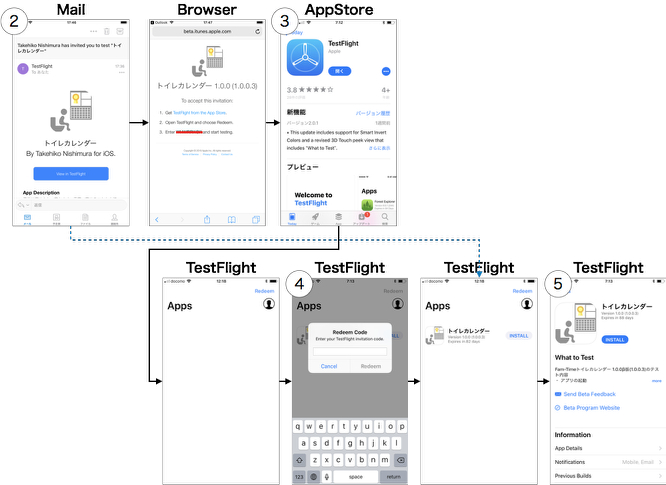 ここではまず、1.のTestFlightアプリのインストールを始めましょう。