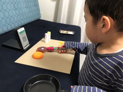 実際の料理はできませんが、おもちゃを使って料理の体験をしてもらいます。