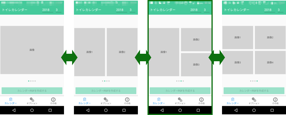 スマホ内の写真を1〜4枚使って、オリジナルカレンダーを作れます。