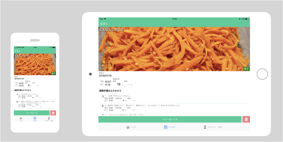 このデータはユーザがどのレシピを料理したかだけでなく、どれくらい時間がかかったかを知る事が出来ます。