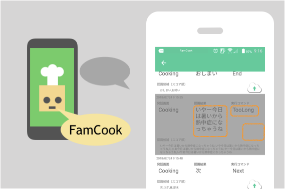 昨日、リリースさせて頂いた、FamCookは音声認識によって、画面を触らなくても音声コマンドで操作できるようにしています。