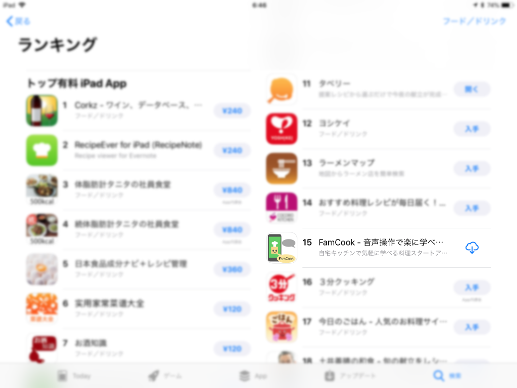 なお、FamCookがiPad Appランキングで何と15位にランクインしました!