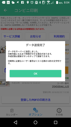 この状態でデータは送信が完了されました。その後、クラウド上で印刷用のデータが作成されますので、「OK」ボタンをタップし、