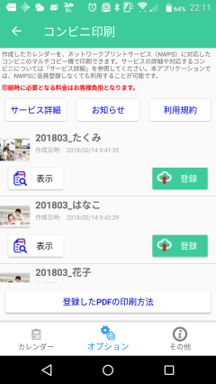 この機能を使えば、自宅にプリンターのないご家庭でもトイレカレンダーを印刷する事ができるだけでなく、遠く離れた親戚に、コンビニで印刷してもらってプレゼントすることも可能です。