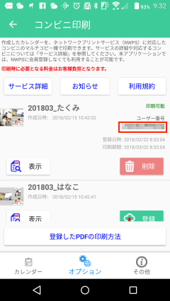 印刷用データが作成されると、先ほどの「データ作成中」が、「印刷可能」に変わり、コンビニで必要となる「ユーザー番号」と、登録日時、印刷期限が表示されます。